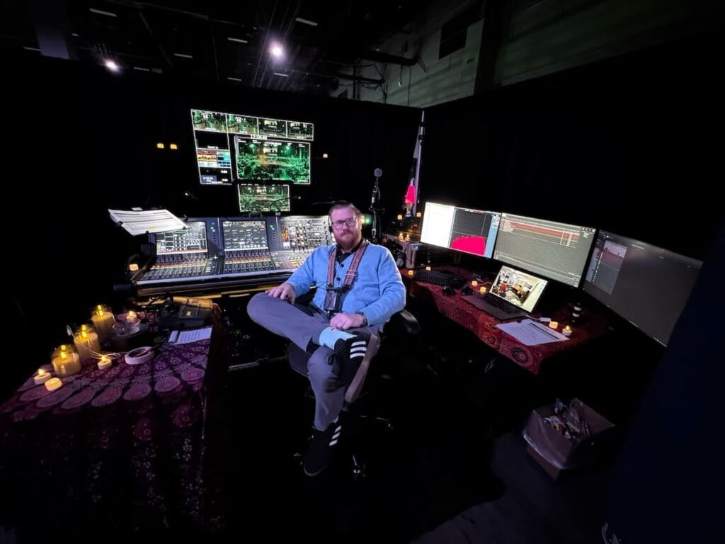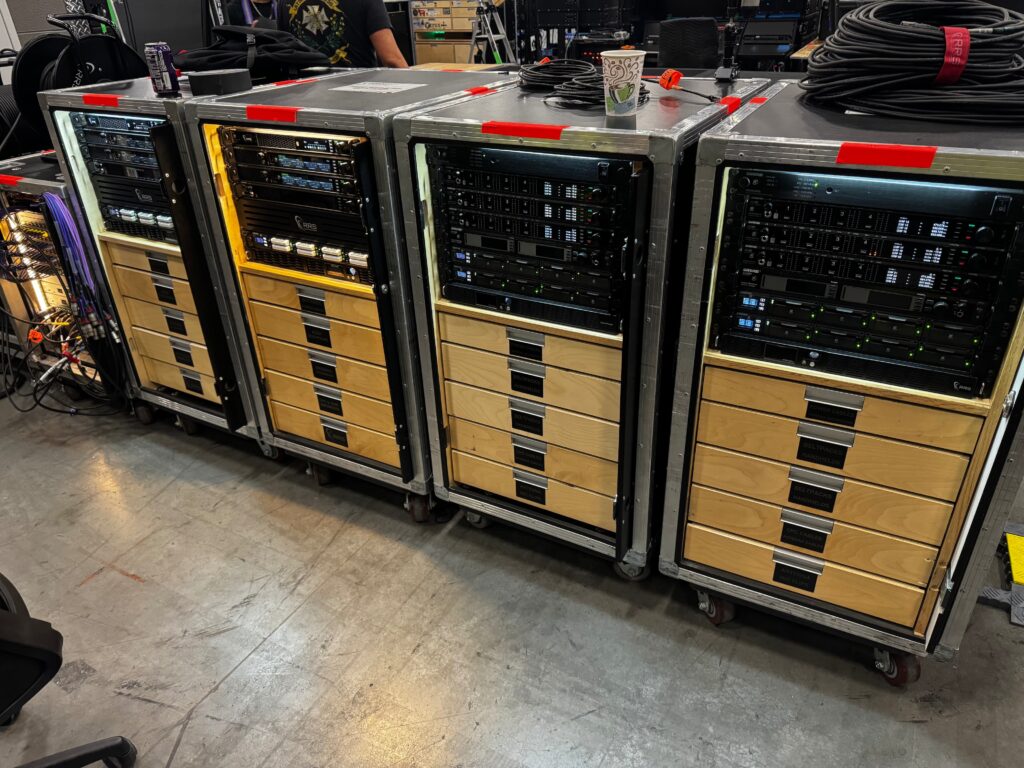 Meanwhile, behind the scenes, Brent Dunn from DSP Live was keeping the engine running. In addition to setting up all the Axient mics and ears, he helped oversee the build of the Dante infrastructure that connected every part of the system — all while bringing order to the extremely busy backstage environment.