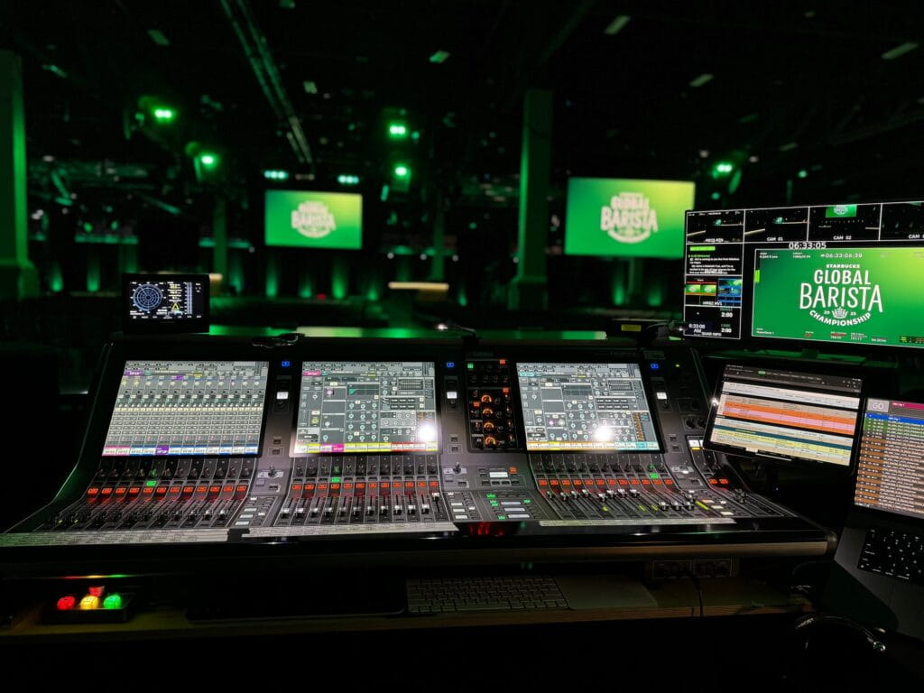 He also enlisted support from the RRS staff to help coordinate the massive number of mic-ups and quick de-mics required to keep pace with the rapid show flow. Both Brent and Zach QC’d each barista’s IFBs before they hit the stage to ensure everyone was hearing exactly what they needed — a small step that made a big difference in maintaining consistency across so many fast-moving rounds.